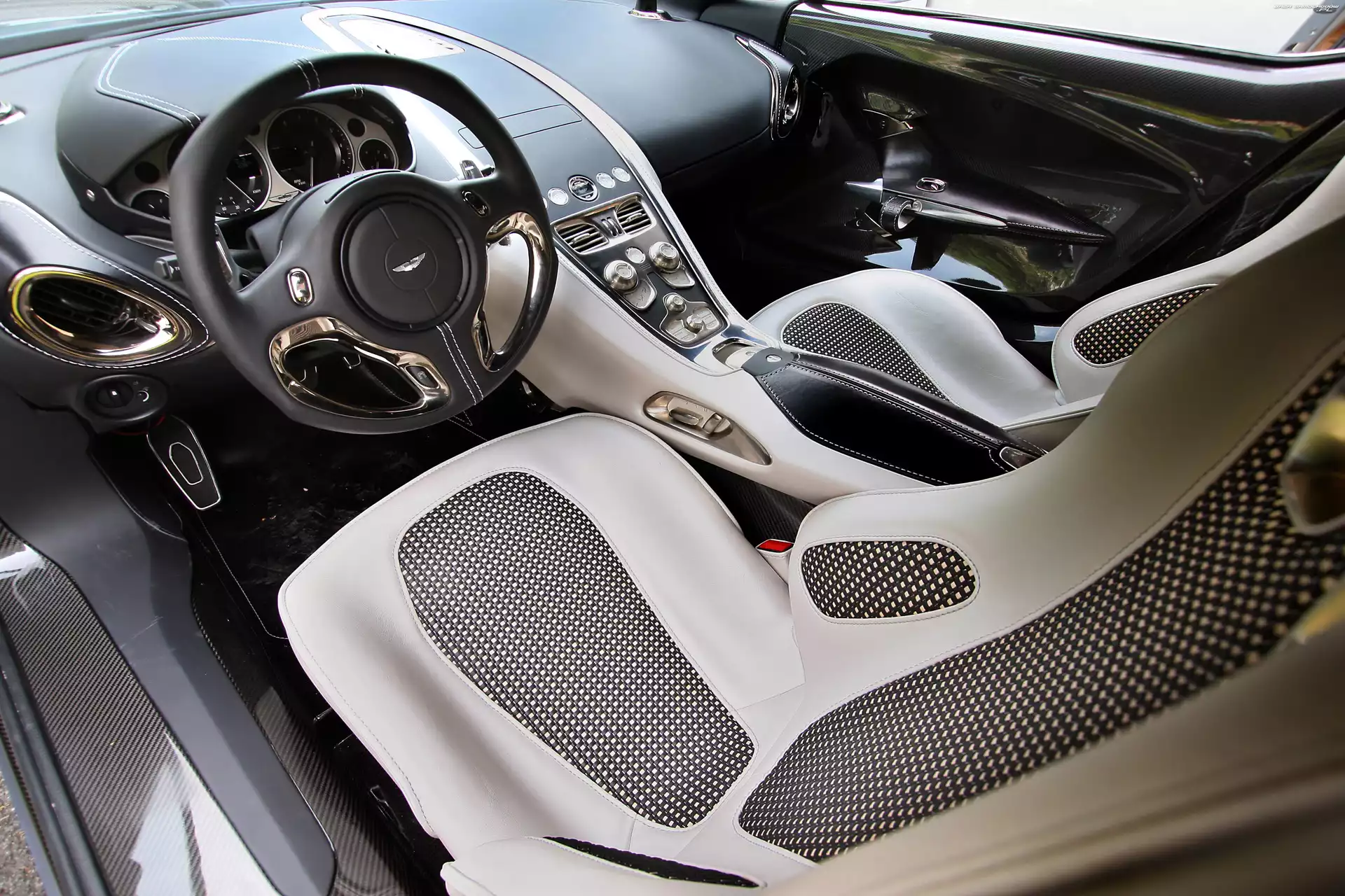Kokpit, Aston Martin One-77 Maska, Aston Martin One-77 Zderzak, Aston Martin One-77, Atrapa Dyfuzor, Tył, Aston Martin One-77 Wiśniowy, Aston Martin One-77 Salon, Aston Martin One-77, Wystawa Aston Martin One-77 Logo, Aston Martin One-77, Reklama Ulica, Srebrny, Aston Martin One-77 Fotele, Aston Martin One-77, Konsola Przetłoczenie, Aston Martin One-77, Alufelgi Aston Martin One-77, Kierownica