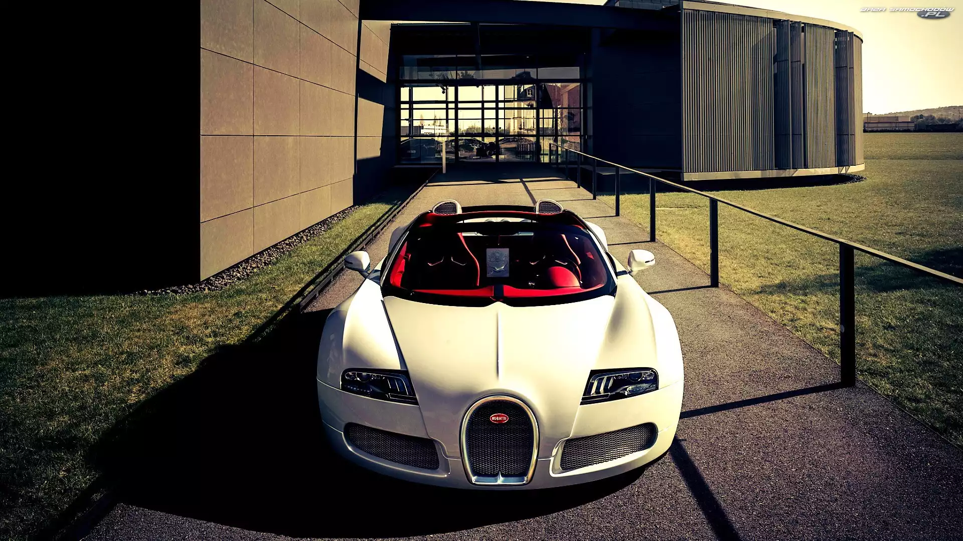 Samochód: Budynek, Droga, Bugatti, Kremowy, Veyron