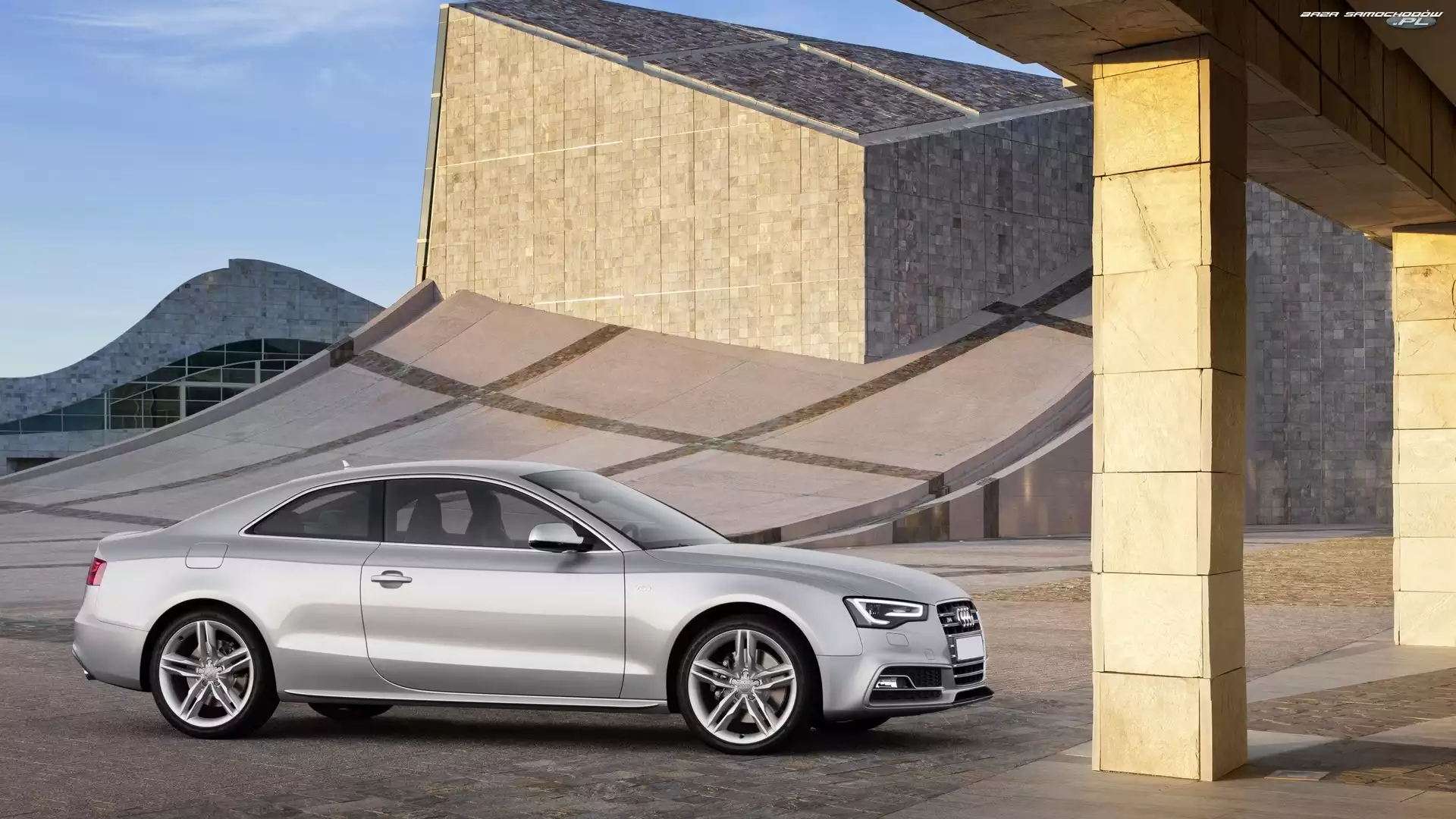 Budynek, Audi S5, Srebrne- Zdjęcia samochodów