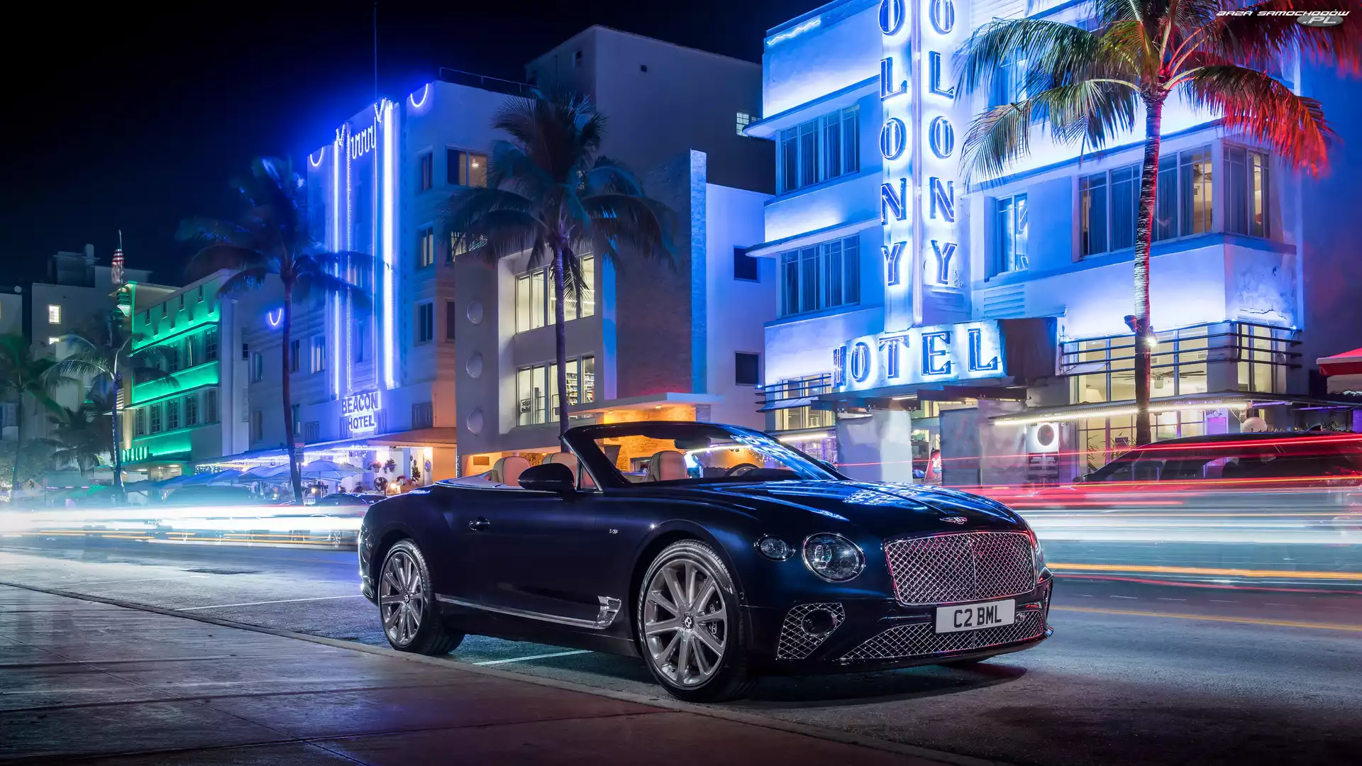 Noc, Domy, Cabrio, Bentley Continental GT V8, Ulica- Zdjęcia samochodów