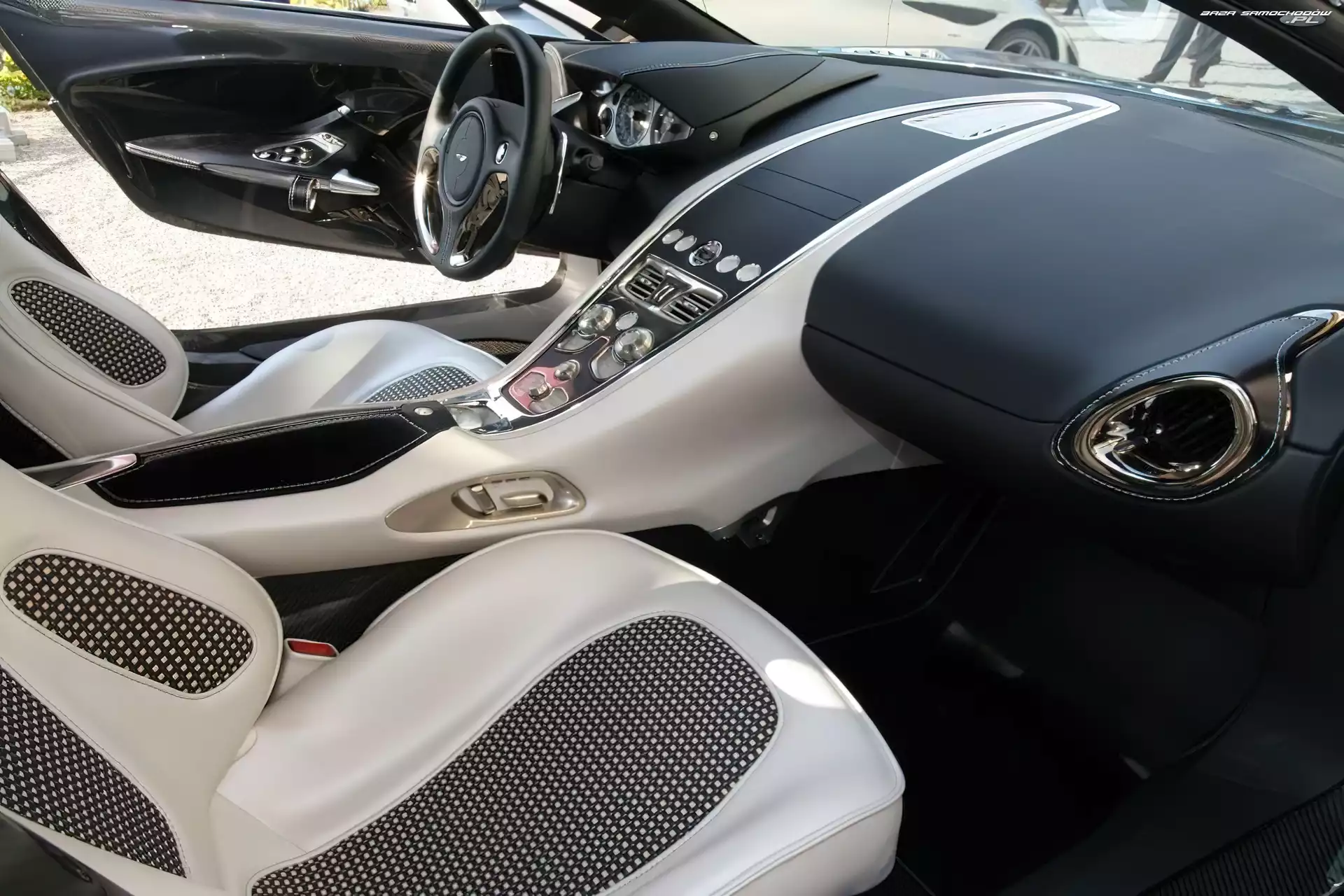 Kokpit, Aston Martin One-77 Maska, Aston Martin One-77 Zderzak, Aston Martin One-77, Atrapa Dyfuzor, Tył, Aston Martin One-77 Wiśniowy, Aston Martin One-77 Salon, Aston Martin One-77, Wystawa Aston Martin One-77 Logo, Aston Martin One-77, Reklama Ulica, Srebrny, Aston Martin One-77 Fotele, Aston Martin One-77, Konsola Przetłoczenie, Aston Martin One-77, Alufelgi Aston Martin One-77, Kierownica