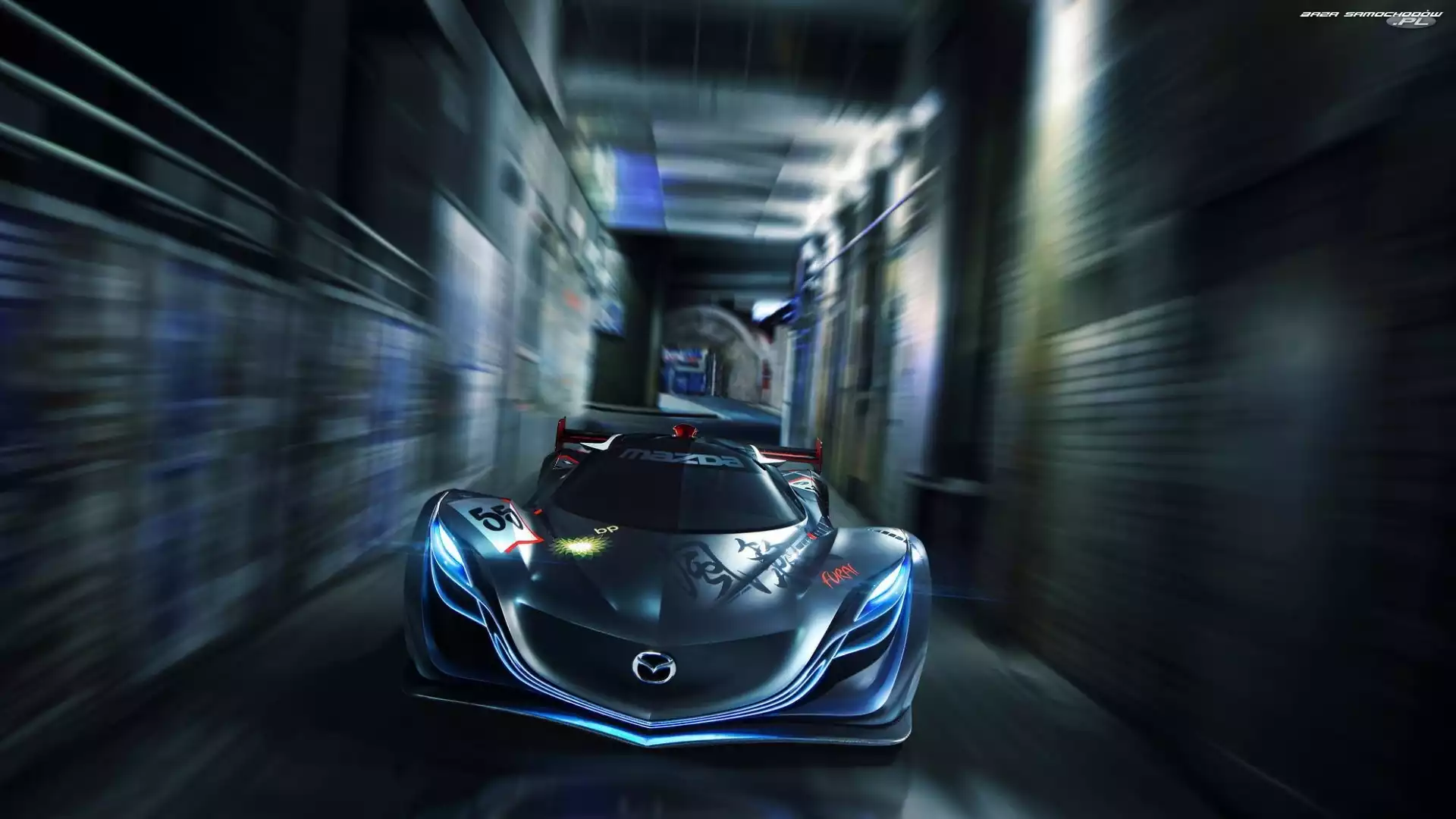 Mazda Furai, Wloty, Powietrza Ksenony, Tło, Mazda Furai, Szare Samochód, Prototyp, Mazda, Rajdowy Sport, Mazda Furai, Tor Budynki, Mazda, Furai Spojler, Mazda Furai Mazda Furai, Zakręt Fractalius, Mazda, Furai Niebo, Mazda, Furai Tunel, Mazda, Furai
